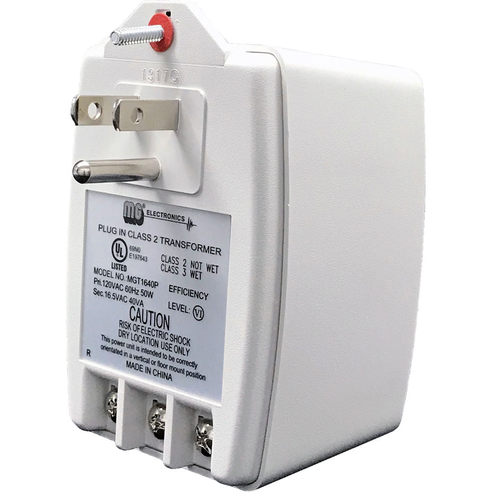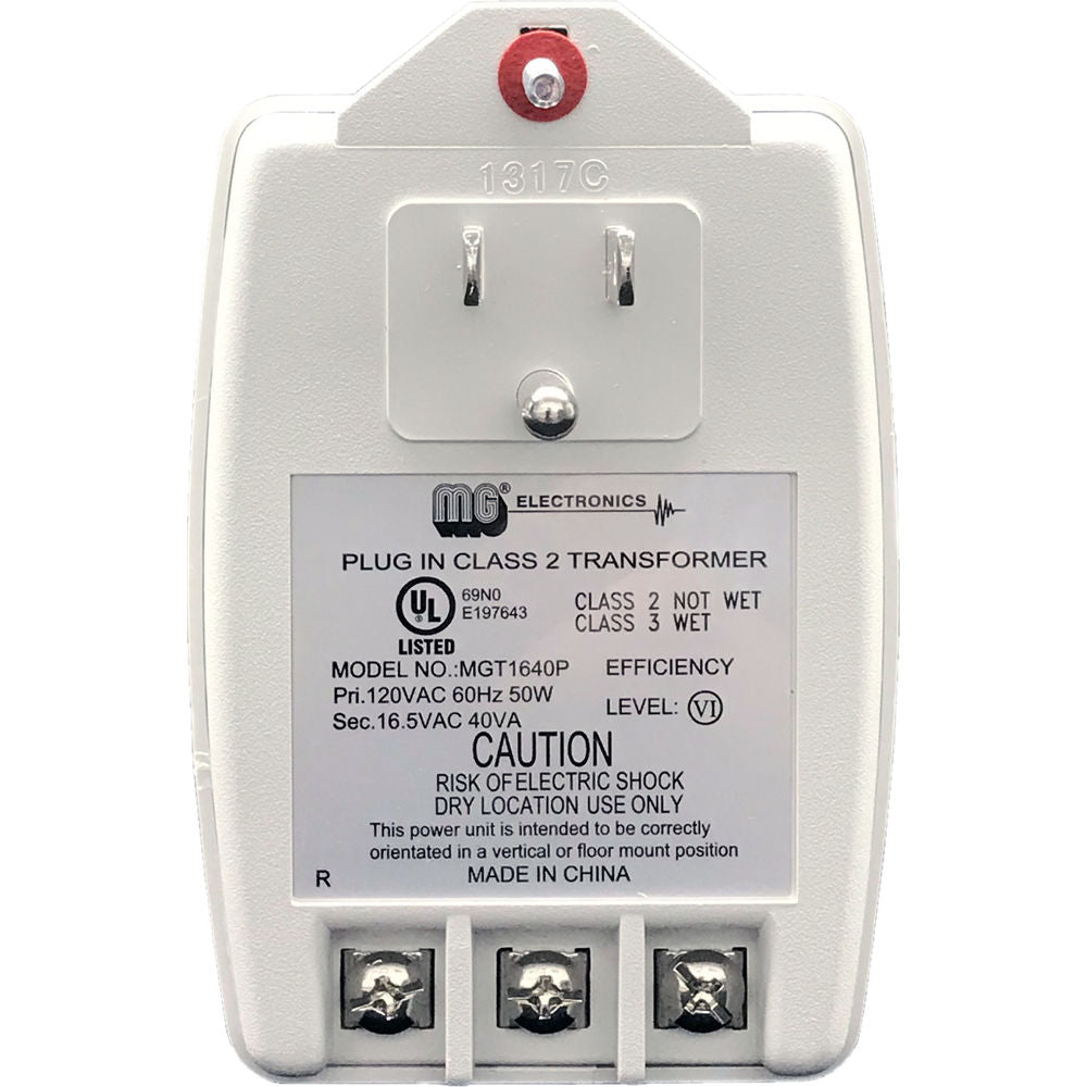 MG Electronics 16.5 VAC 40VA Class II Power Supply with Screw Terminal Output and Auto-Resetting PTC Fuse