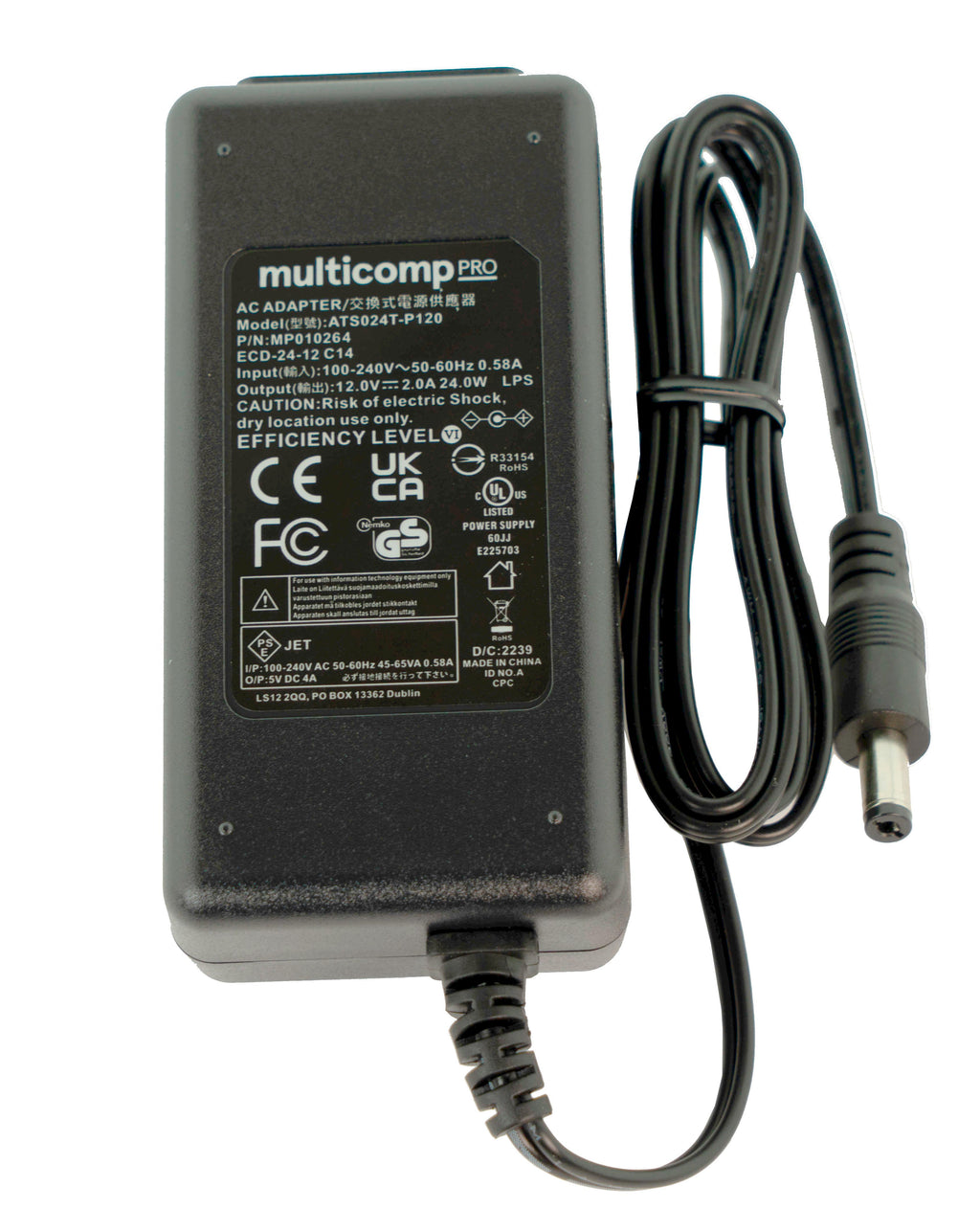 - Output DC voltage is 12VDC, output rated current is 2amp, output rated power is 24W