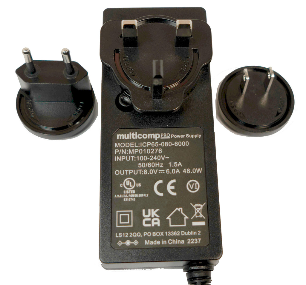 MP010276 is 65W multi head ( UK, EUR and USA ) external plug in adapter. It also includes specifications that are typical at nominal input, full load. It includes overcurrent, short circuit protection. Approved by UL, CUL, FCC, SAA & C-Tick, CB.