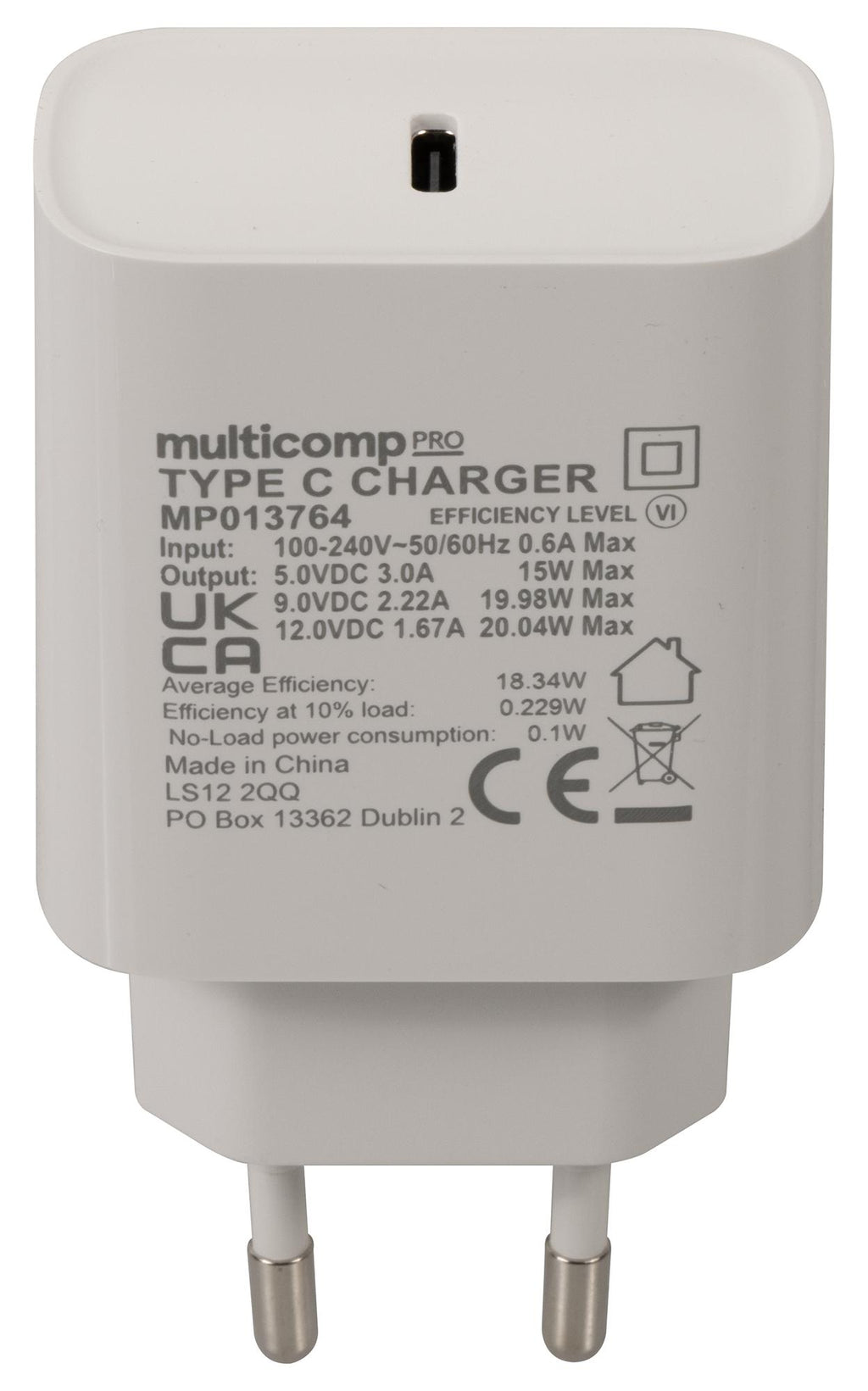 The Euro USB-C PD Mains Charger delivers up to 20W of power, featuring one USB-C port for fast and efficient charging. It supports a wide range of smartphones, tablets, and other USB-C devices, with output options of 5V @ 3A, 9V @ 2.22A, and 12V @ 1.67A. This compact charger ensures reliable power delivery for all your USB-C-powered gadgets.