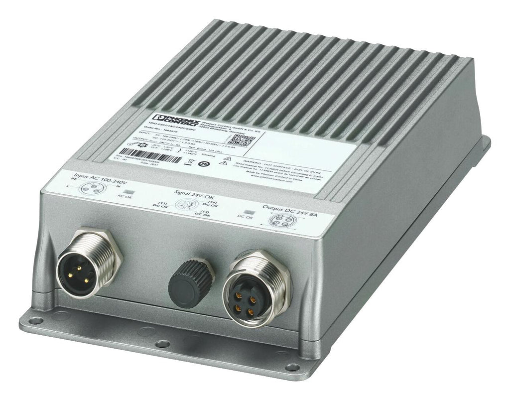 1065976 is a TRIO POWER primary-switched power supply in IP67 die-cast housing ideally suited for distributed supply in the field. The weather resistant aluminium housing protects the devices against dust and water. This enables the power supplies to ensure high system availability even in harsh ambient condition.