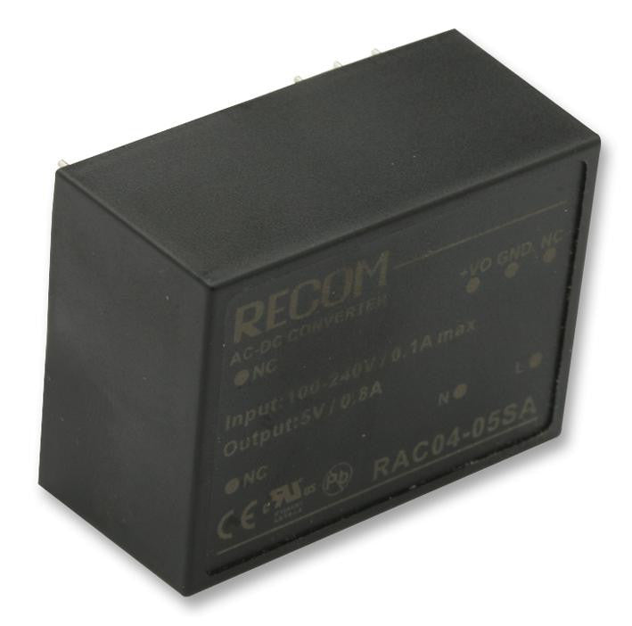 This is a AC/DC PCB Mount Power Supply (PSU), Ultra Compact, 1 Output, 4 W, 24 V, 167 mA product from RECOM POWER with the model number RAC04-24SA