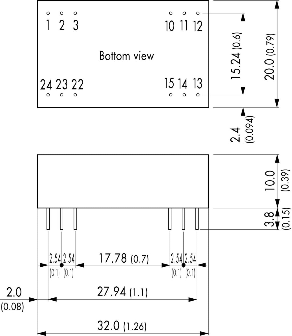 TRACO POWER TEM 3-2423N Isolated Through Hole DC/DC Converter, ITE, 1:1, 3 W, 2 Output, 15 V, 100 mA