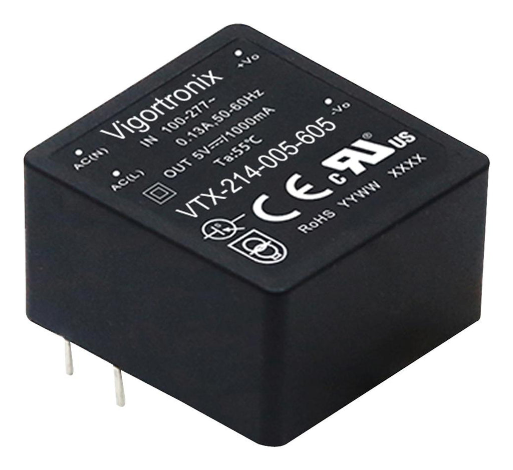 Vigortronix VTX-214-005-605 AC/DC PCB Mount Power Supply (PSU) Class II ITE Household & Transformers 1 Output 5 W VDC