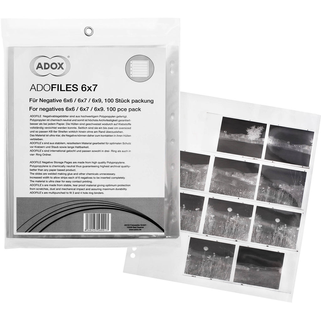 Safely store and organize your valuable negatives with these 120 ADOFILE Negative Sleeves (100-pack) from Adox. These sleeves fit in three-ring binders and are also designed to fit in Adox ADOFILE storage binders. Photographers will appreciate the archival polypropylene construction.