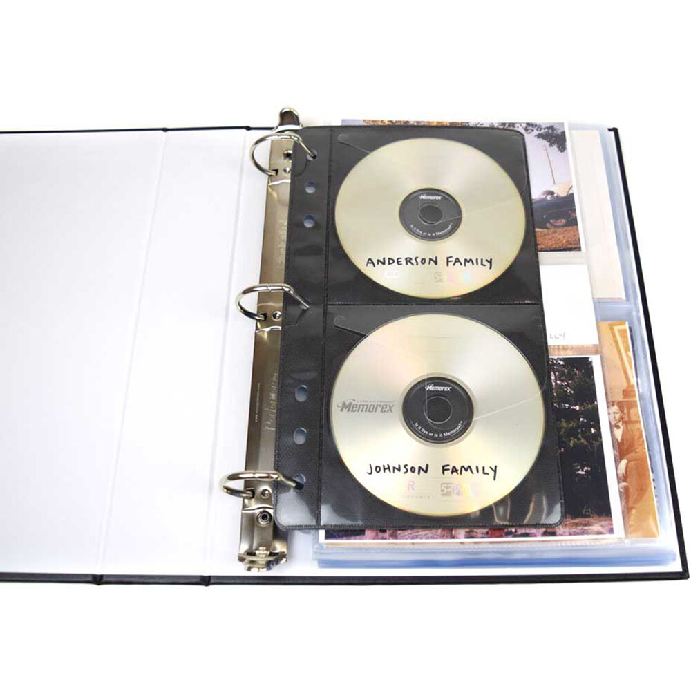 The binder holds pages up to 11.75 x 8", not included. It supports Archival Methods narrow binder pages (model #s 56-246, 52-017, and 56-002), sold separately. One of these optional binder pages has pockets that support 4 x 6 photos. Another supports up to 5 x 7". And one supports CDs and DVDs. You can create a photo or disc album. The binder has a 2.5" spine and 1.5" D-rings and will hold about 60 pages with contents. The narrow size of the binder allows it to fit well on most bookshelves.
