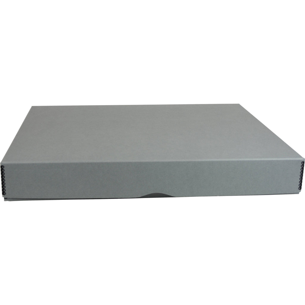 Safely store a variety of artwork in the gray, 16.5 x 20.5" Deep 3" Flat Storage Box with Full Top from Archival Methods . The box is metal edged for durability, and has a removable top for faster loading. Archival-grade boxboard ensures proper storage.