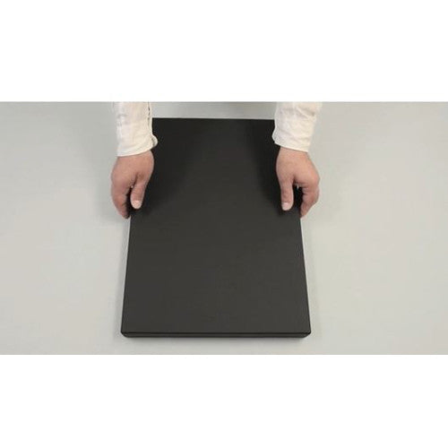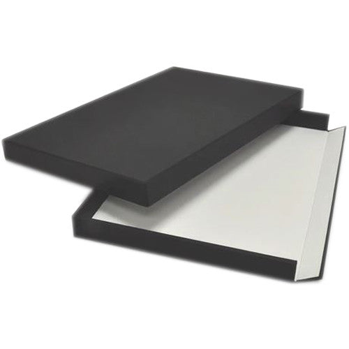 With a drop front design, the 18.5 x 24.5 x 1.5" black Museum Drop Front Box allows easy access to your prints, while a removable lid reduces table space needed during presentation. The interior of the box is lined with a 10-pt. card stock that is acid- and lignin-free. With a depth of 1.5" it can accommodate between 60 to 70 unmounted prints or 10 to 12 matted 4-ply prints. The adhesive used in construction is pH balanced, and the archival box has passed the Photographic Activity Test (PAT), which makes the box suitable for long-term storage.