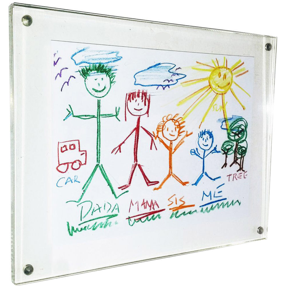 Constructed from durable acrylic, the frame's rear panel features keyholes for secure horizontal or vertical placement on a nail or screw, while the front panel can be easily cleaned with a soft, dry cloth.