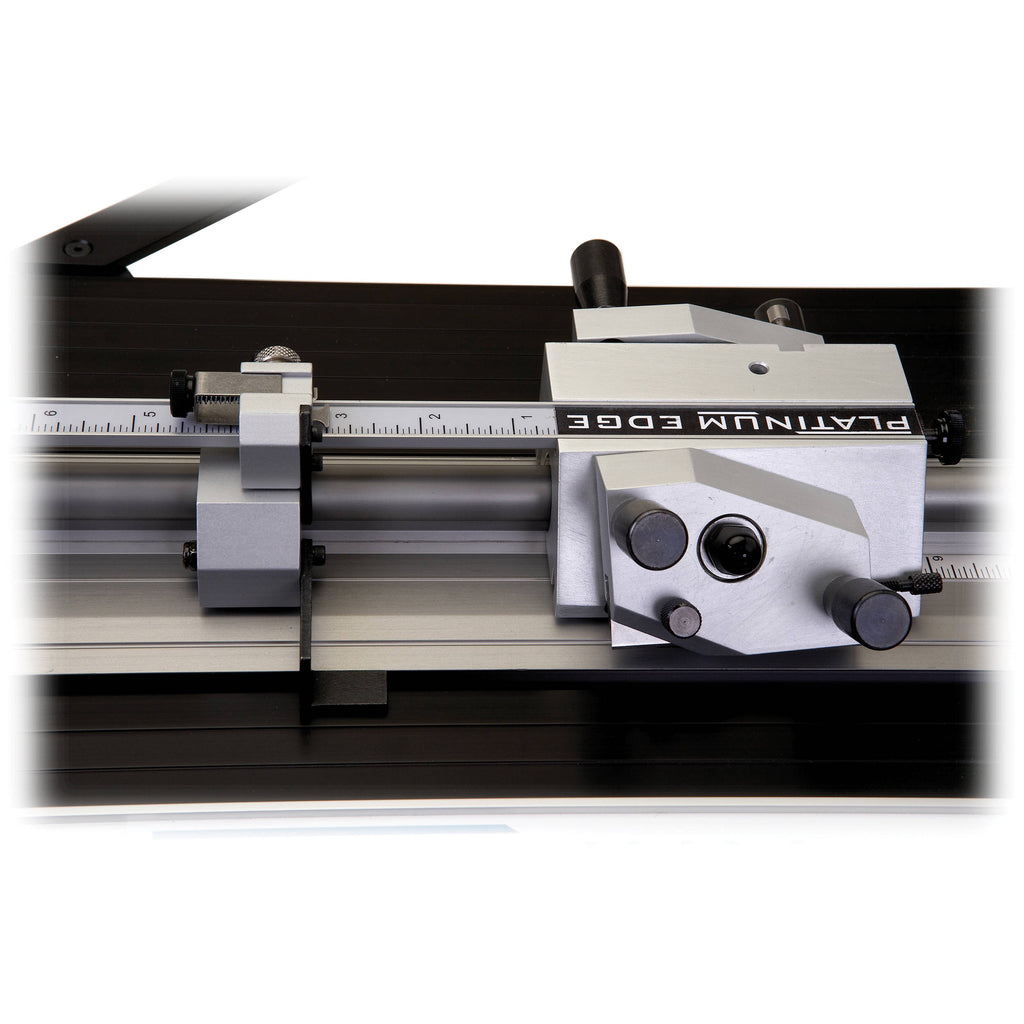 The Logan Model 850 Platinum Edge 40" Mat Cutter is a durable mat cutter capable of producing professional quality work. It features 4 and 8-ply cutting capability, a quick-change magnetic blade cartridge, and a micro-adjustable magnetic movable stop. In addition, it has a 32" (81cm) removable scaled squaring arm and dual cutting heads for both bevel and straight cuts.