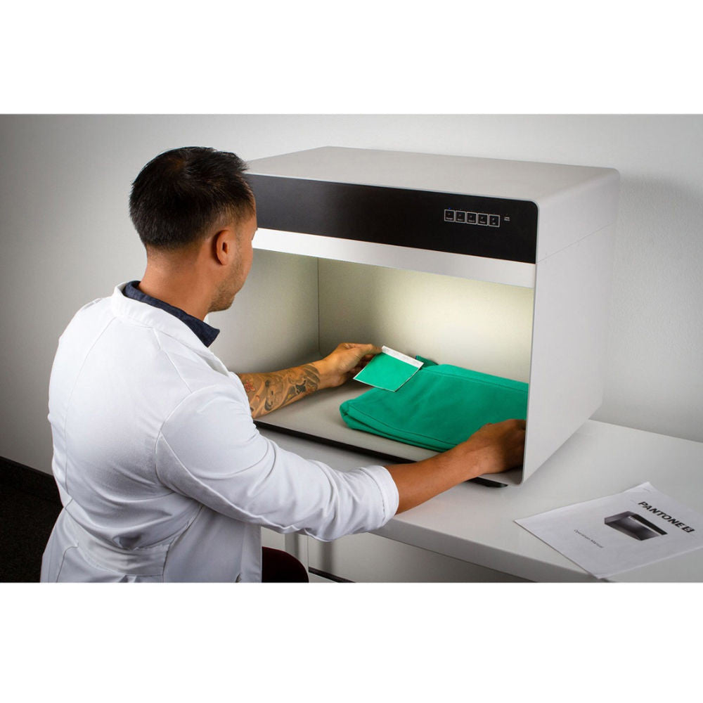 Make critical color choices while reviewing your work properly and accurately within the PANTONE 5 Light Booth D50 . The D50 provides consistent and controlled lighting through industry standard fluorescent bulbs to simulate daylight, home, and store lighting. A neutral background aids in accurate color viewing and an hour counter prevents light from being unintentionally left on when not in use. The Light Booth is easy to operate and maintain, and its contemporary design is sized to fit well into and complement most work spaces. Durable aluminum construction and a powder-coated finish for stain and scratch resistance ensure your new Light Booth will stand the test of time.