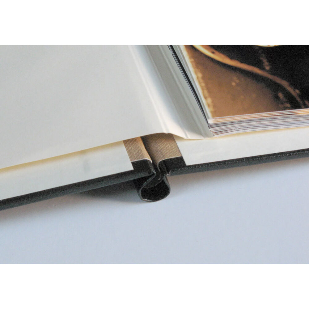 In black, this PermaJetUSA SnapShut Folio Photo Book holds 10 x 10" square prints and has a scratch-resistant leather outer cover and a glue-free hinge. The hinge securely holds virtually any paper type, from ultrathin sheets to heavyweight photos. Easily insert or remove your prints in seconds. Simply fold back the cover to release the clasped binding, remove or insert your prints, and then close the binder again. Featuring a 0.6" spine width, the book holds 20 prints at 250 gsm each, or more if lighter-weight prints are used.