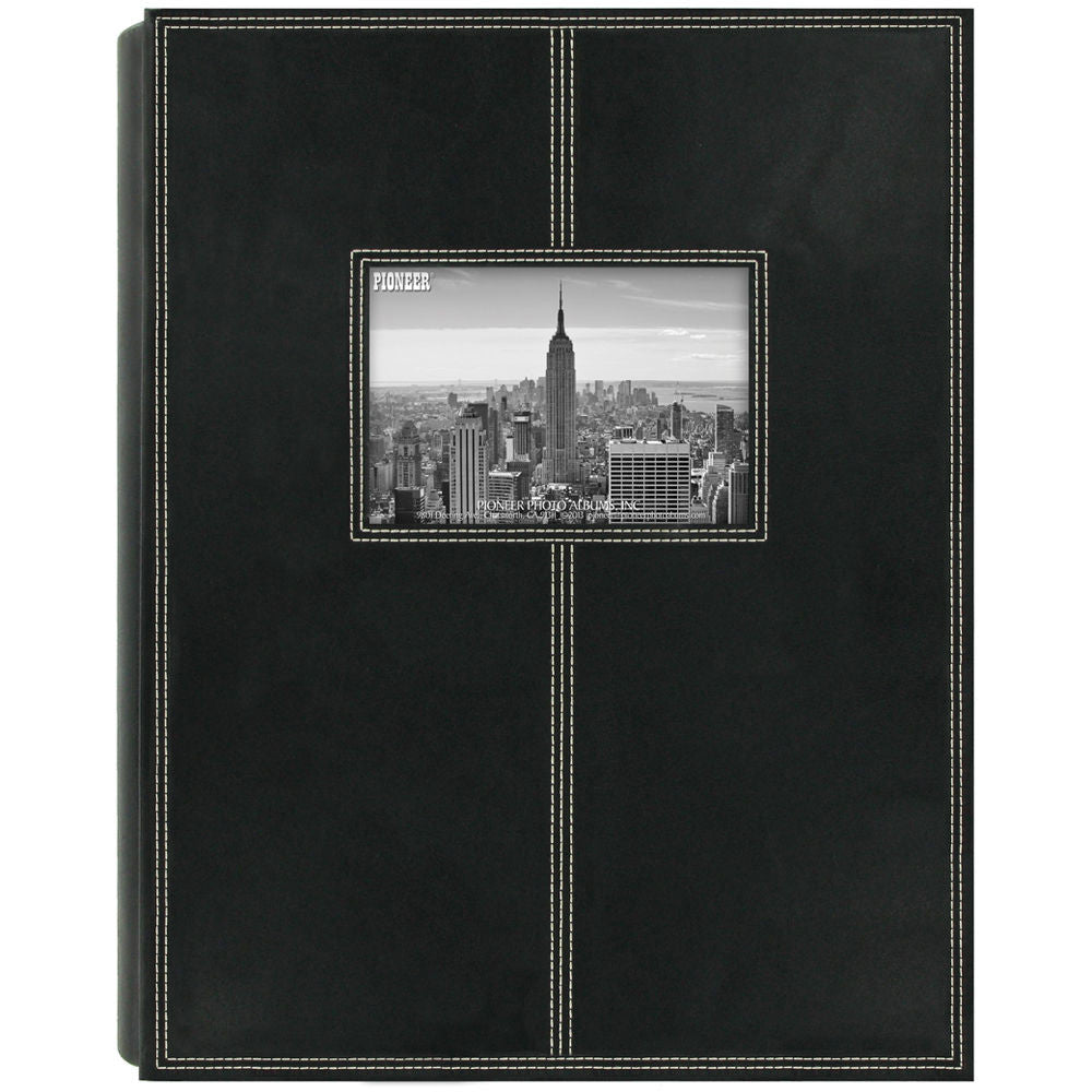 The Pioneer 5PS300 Sewn Frame Leatherette Photo Album features a black leatherette cover and is designed to display and protect 300 4x6" photos. The 5-up style pages can display 3 horizontal and two vertical images per side.