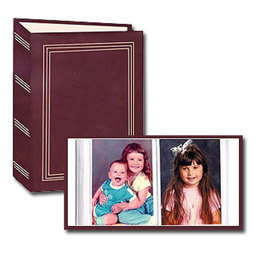 The Pioneer Mini-Max Pocket Album features a black leatherette cover and is designed to display and protect 100 4x6" photos. The 1-up style pages can display one vertical image per side.