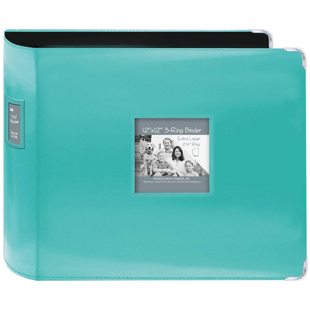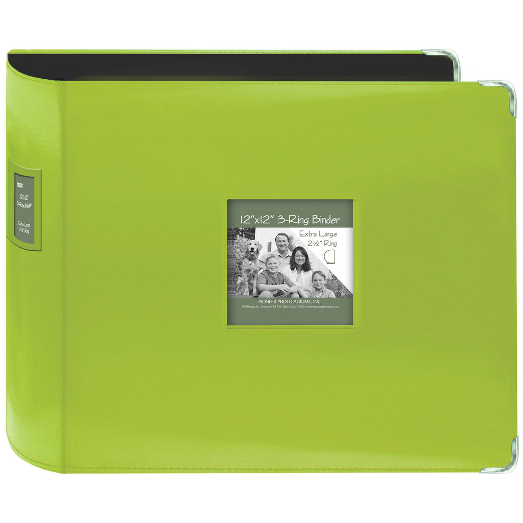 Pioneer Photo Albums T-12JF 12x12" 3-Ring Binder Sewn Leatherette Silver Tone Corner Scrapbook (Green)