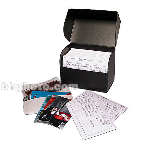 This Flip-Top Photo Storage Box from Print File measures 7.5 x 5.75 x 4.5". It is designed to accommodate Print File's storage envelopes.