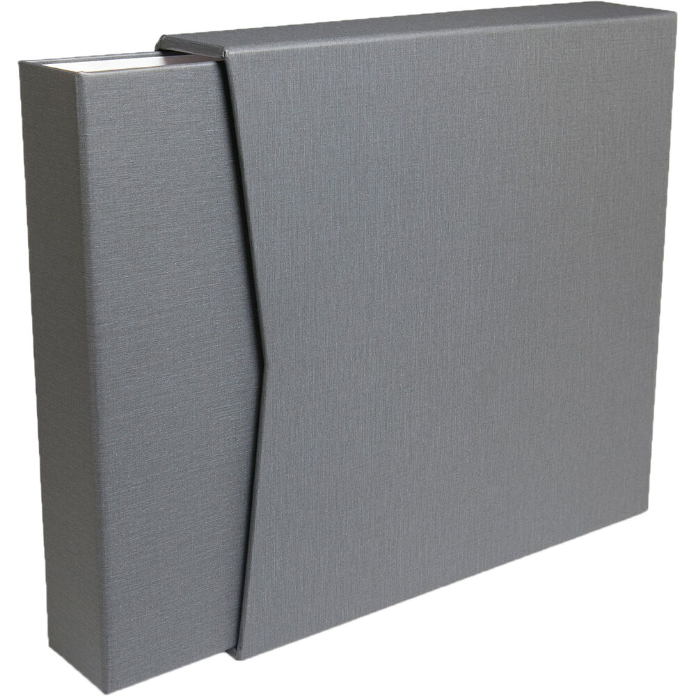 The Print File Slipcase for Oversized Binders is a gray buckram-textured 1.5" slipcase that holds Print File 1.5" oversized binders. Completely archival and covered in durable acrylic-coated book cloth, the case is lined with acid- and lignin-free white paper. Slipcases add an additional layer of protection against dirt, dust, and light for your binder and its valuable contents.