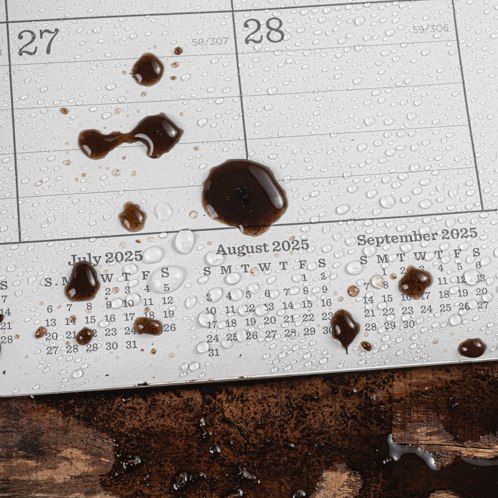 From a dirty garage to an outdoor jobsite, the 2025 13-Month All-Weather Desk Calendar from Rite in the Rain will help you keep track of important reminders and appointments. This version of Rite in the Rain's desk calendar is dated for the year 2025. Each gray, 32 lb, perforated page measures 16 x 20" and is water and dirt resistant. Made from Rite in the Rain's all-weather wood-based paper, the pages are securely bound with weatherproof glue. Features of the calendar include ruled date boxes to organize reminders, a side section for taking general notes throughout the month, and a bottom area that displays previous and upcoming months.