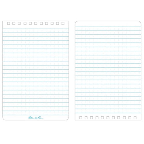 Standard notebooks are not designed to be waterproof, and their pages will bloat and disintegrate when they get wet. The blue All-Weather Top-Spiral Pocket Notebook from Rite in the Rain features 50 spiral-bound sheets of water-resistant paper with a universal page pattern - this is a go-anywhere works-all-the-time journal in a convenient 4 x 6" format.