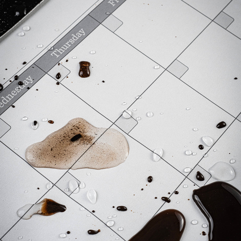 From a dirty garage to an outdoor jobsite, the Undated 13-Month All-Weather Desk Calendar from Rite in the Rain will help you keep track of important reminders and appointments. This version of Rite in the Rain's desk calendar is undated to give you the freedom to start it in any month of any year. Each gray, 32 lb, perforated page measures 16 x 20" and is water and dirt resistant. Made from Rite in the Rain's all-weather wood-based paper, the pages are securely bound with weatherproof glue. Features of the calendar include ruled date boxes to organize reminders, a side section for taking general notes throughout the month, and a bottom area that displays previous and upcoming months.