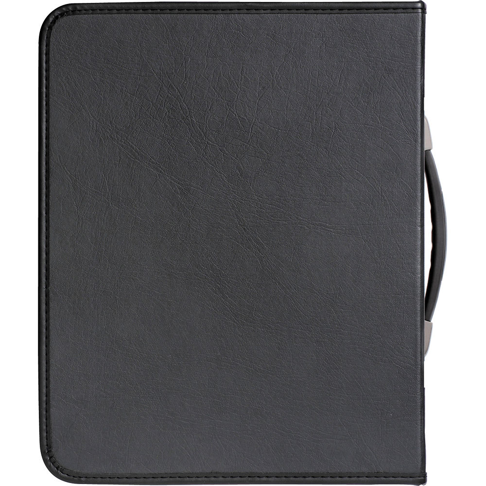 The cover is made from a laminated black waterproof cover with a fine, elegant lining. The included 10 pages are held in place and substituted using the black 1" multi-ring mechanism that prevents the pages from snagging. When carrying the case, the improved spine mounted handle allows the pages to hang flat so there's no worry about them wrinkling. An inside storage pocket is provided for collateral material such as your resume or business cards.