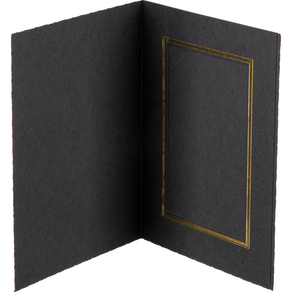 These black/gold Profit Line T-50 Portrait Folders (25-pack) from Tap provide a professional way to display your photos. Each folder is made from high-density, high-quality, recycled paper and accommodates a 4 x 6" print.