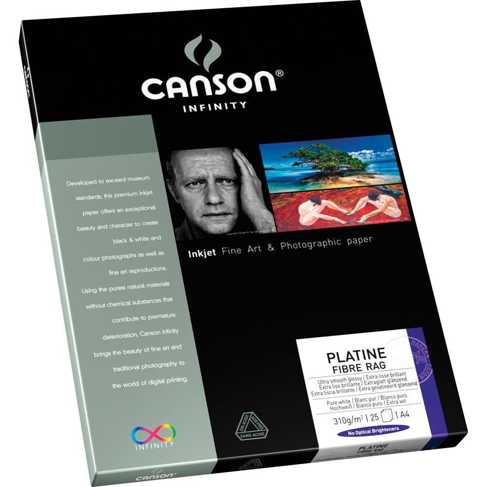 With an aesthetic and feel mimicking that of F-type smooth satin fiber paper from the darkroom, Platine Fibre Rag Paper from Canson Infinity sets a standard for printing in the digital age. Available here as a 25-pack of 11 x 17" sheets, the 100% cotton paper has the latest microporous coating along with the classic platinum/platine finish for bringing a darkroom look to digital printing. The 310 gsm paper also has a thickness of 15.6 mil and is rated with a whiteness of 89.12%. The paper is acid free and internally buffered for longevity and benefits from instant drying and a high water resistance to ensure no damage during handling.