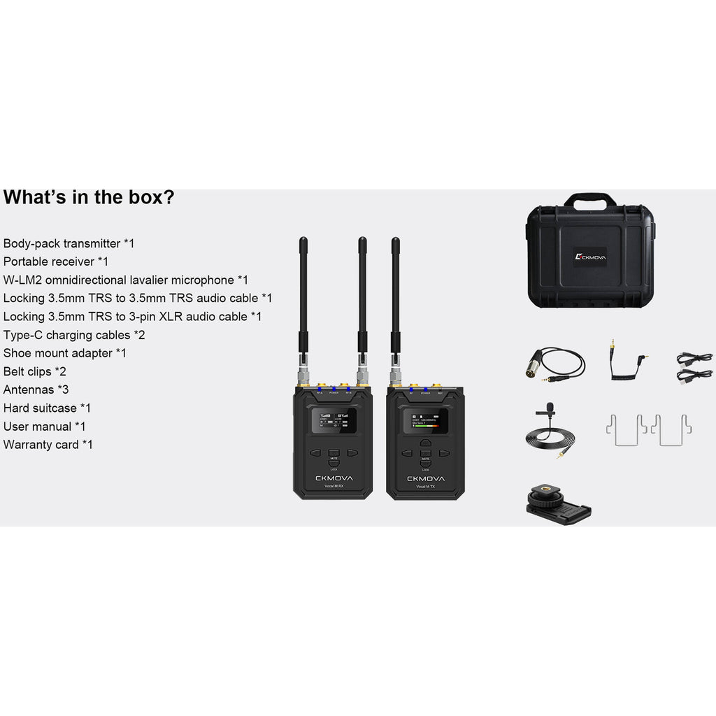 - CKMOVA Vocal M V1 Wireless Bodypack Microphone/Recorder System for Cameras and Mobile Devices (535 to 585 MHz)