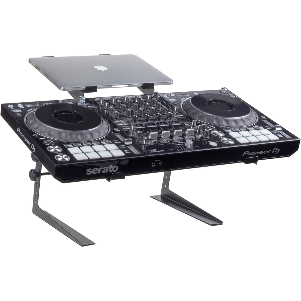 - Strong and durable stand for two devices such as a DJ controller and a laptop or small keyboard and pad controllers