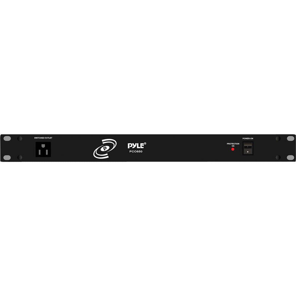 The black PCO850 19" Rackmountable Power Strip Surge Protector from Pyle Pro offers protection to all your systems from spike and surges, and also supplies power to the equipment. It includes 8 rear-panel outlets and a single front-panel outlet, and features a circuit breaker and push-to-reset function with current protection.