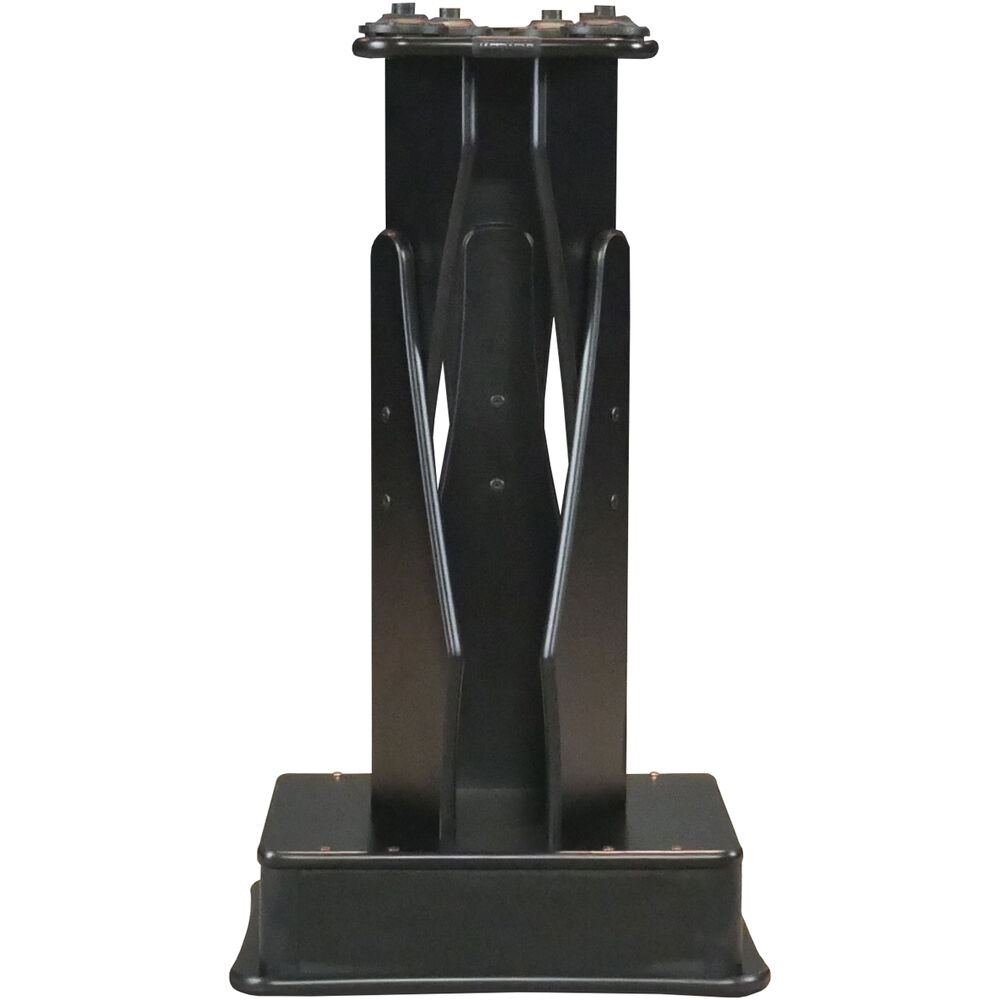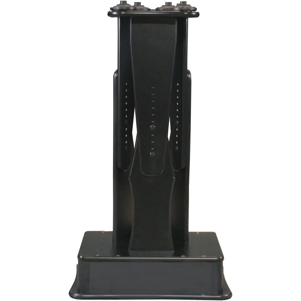 Compliment your audio workstation or studio setup with the ProRak Onus 6V Studio Monitor Stand with Preset ProJax Isolators by RAB Audio. This height-adjustable speaker monitor stand reaches between 36 and 42" and has a 13 x 17" platform. The stand is preset with 6 ProJax Isolators for preventing unwanted vibrations and resonance during audio playback. For additional stability, stash a 50 lb sandbag in the sandbag compartment. Safeguard the stand's edges with the PVC molded edge. A 120 lb weight capacity safely holds your speaker. Take advantage of the included cable clips for a clean setup.