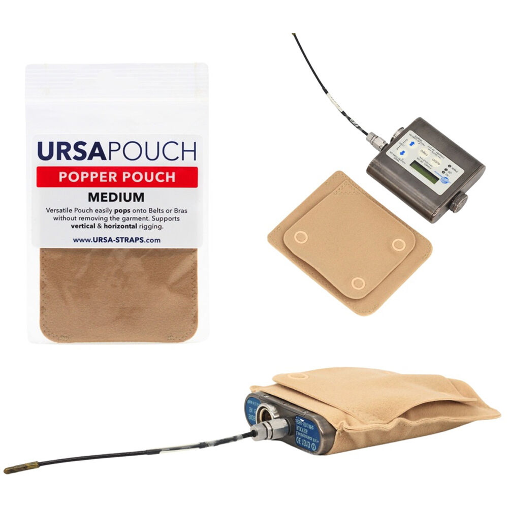 Designed to hide wireless transmitters in a variety of discreet locations, the URSA Medium Popper Pouch from Remote Audio sports a triple-popper design for horizontal or vertical rigging on bras, belts, under hats, car handles, and more. With a pouch measuring 3.4 x 2.9", it can accommodate transmitters such as the Shure ADX1M, Lectrosonics SMDB, and Sennheiser SK 9000.