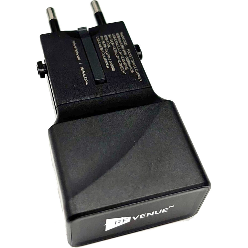 The RF Venue Replacement Universal USB Charger is a wall charger designed for use with USB-powered devices.