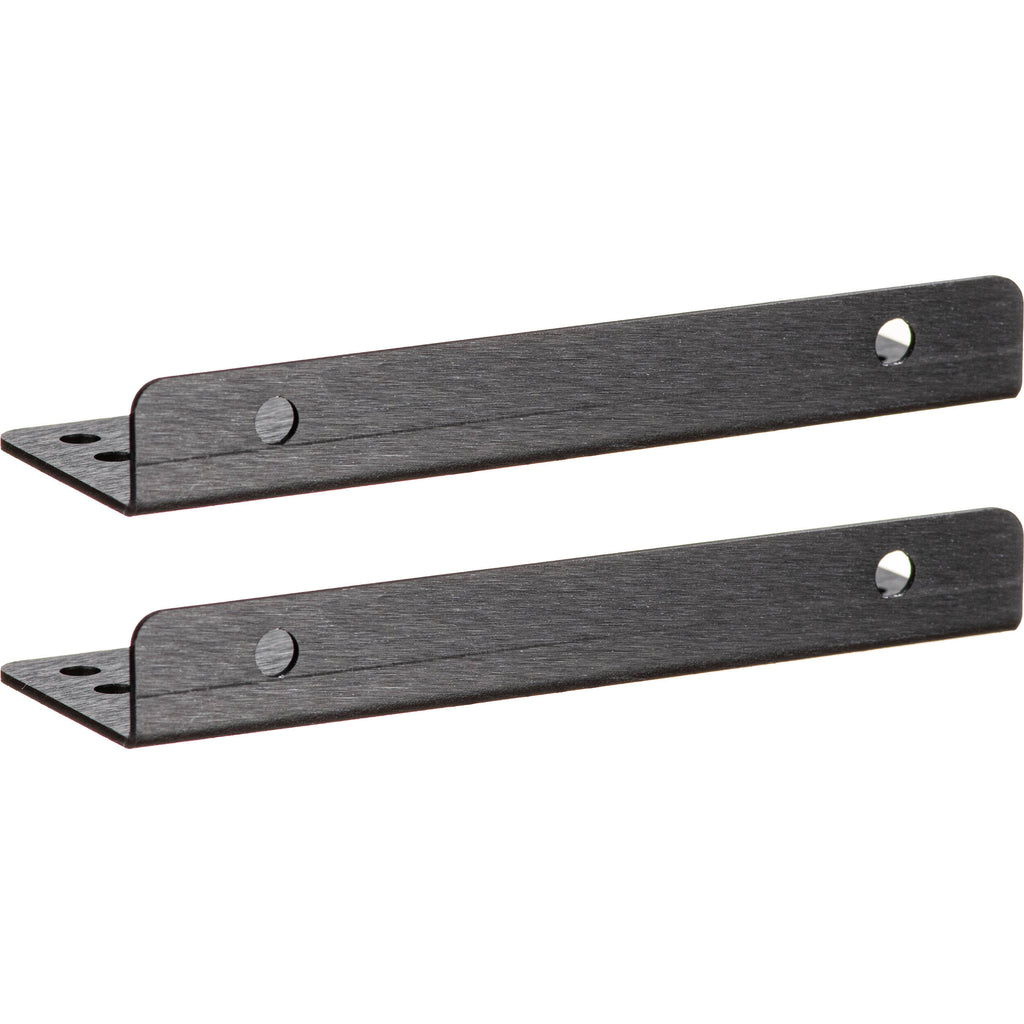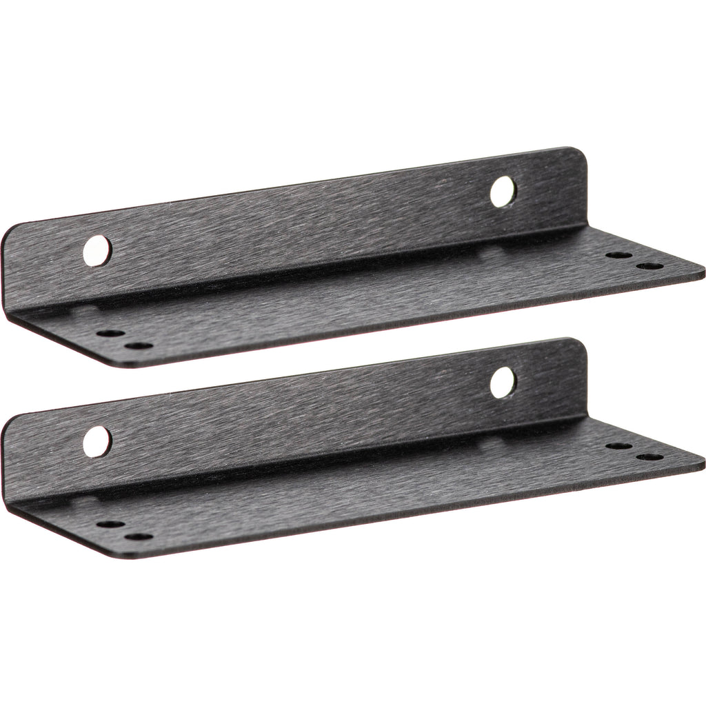 Mount your Model 5200-series interfaces to a flat surface using this Mounting Bracket Kit from Studio Technologies. Designed for wall, desk, or broadcast set mounting, the kit works for mounting model 5202, 5204, and 5205 units, as well as the 391 Dante Alerting Unit, to a flat surface. Two black anodized aluminum brackets, four screws, and four lock washers are included in the kit.