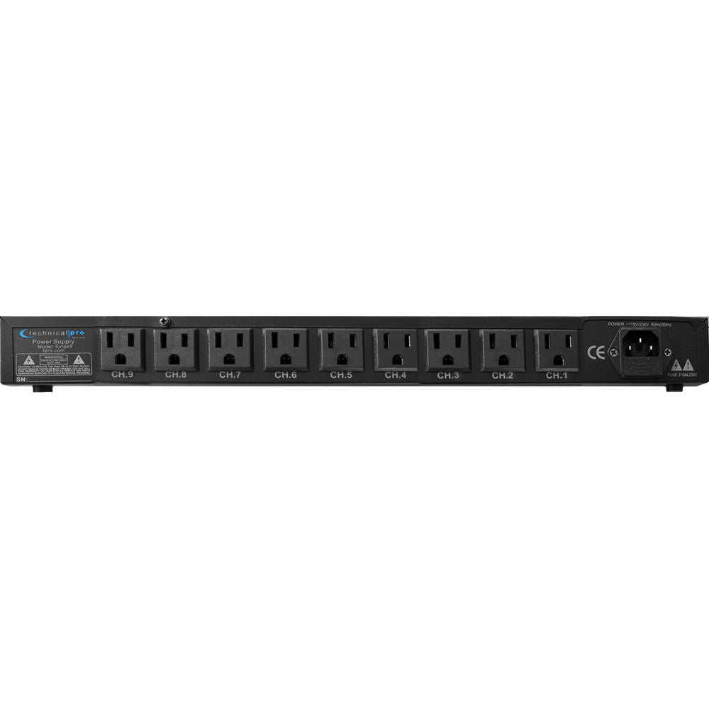 Technical Pro SURGE9 Rackmount 9-Outlet Power Strip with 5V USB Charging Port