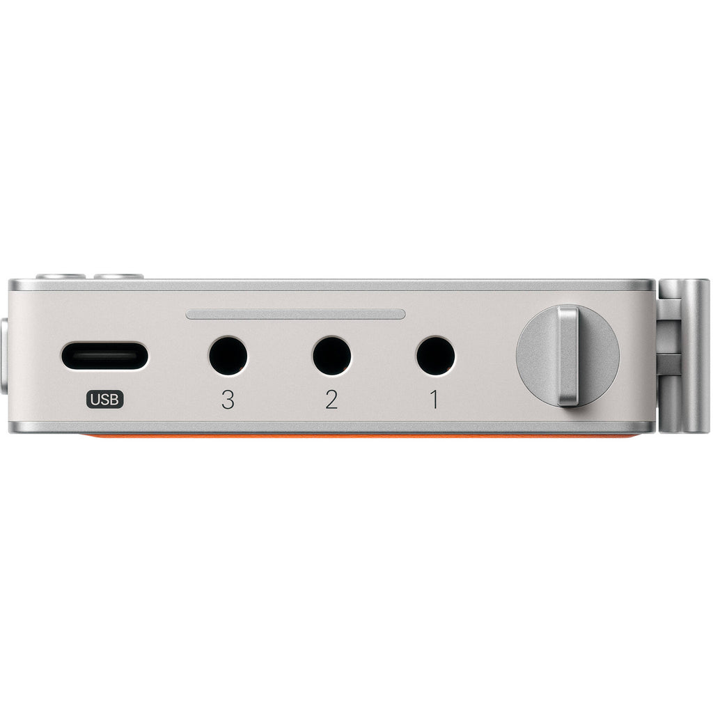 The motorized tape reel allows for scrubbing, pause, and menu navigation, while the rocker allows you to quickly scrub through your audio. Multiple connectivity options include USB-C, Bluetooth, and MFi. The internal battery provides up to 7 hours of use, while the internal 128GB memory will allow you to record hours of audio including voice memos that can be instantly transcribed into text using the TP�7 Transcription app. The TP�7 includes a 1/4" headphone adapter, a braided USB-C cable, and a reusable plastic storage box.