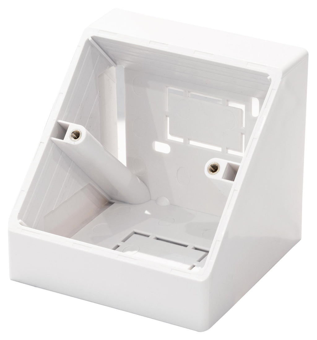 The 3LA from TUK is a high quality back box suitable for mains electrical and multimedia applications. The back box features an angled form factor that allows for bench and corner mounting and is designed to hold standard single gang (86x86mm) faceplates.