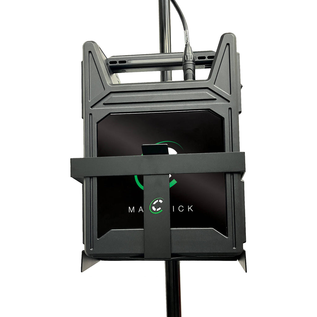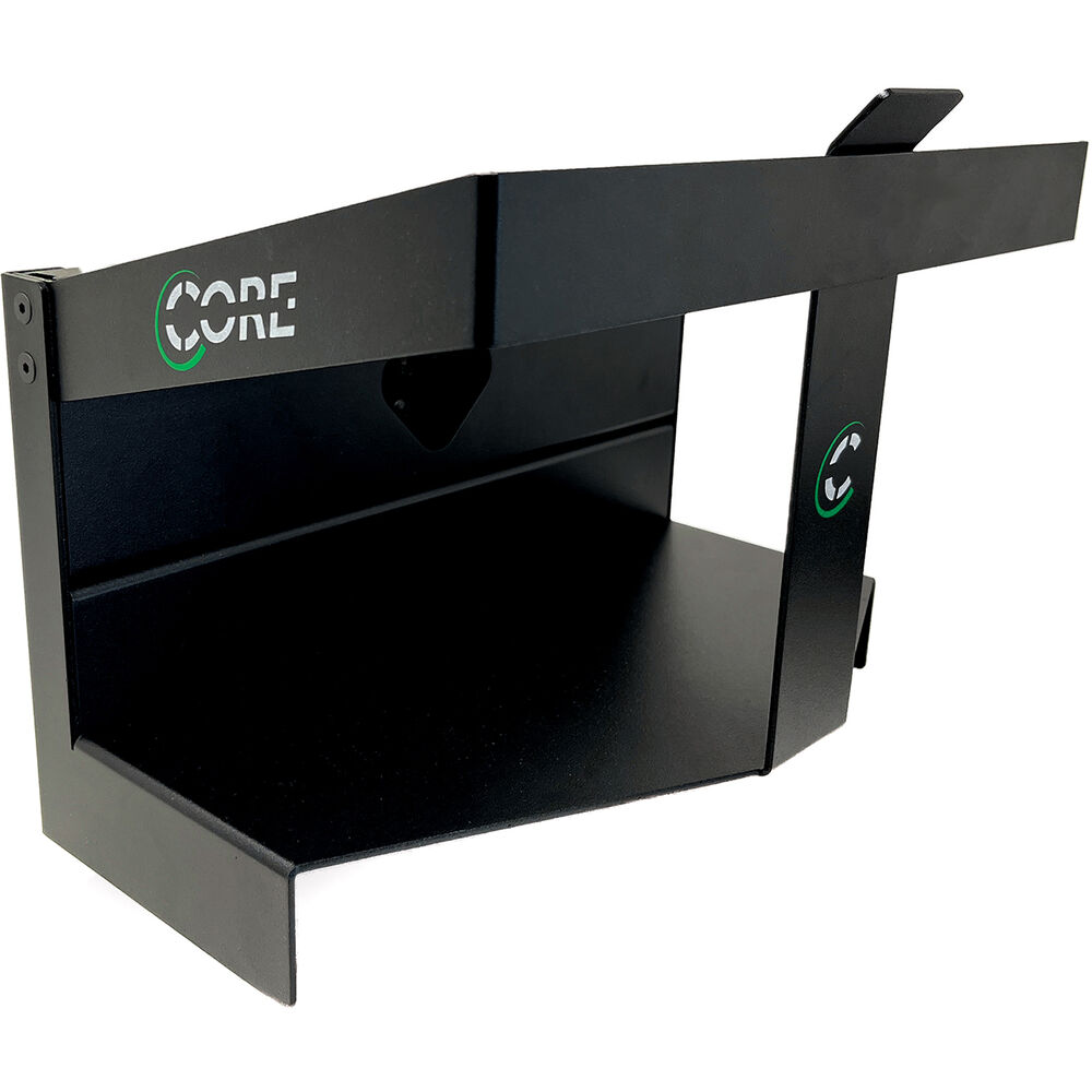 Mount your Renegade, Renegade XL, or Maverick block battery onto a stand or cart with this Power Station Caddy from Core SWX. This durable aluminum caddy provides an easy slide-in mount for your block battery, and it mounts onto a stand or cart arm with a diameter of 0.5 to 2.2". The caddy supports a load capacity of 33 lb, the weight of the Renegade XL.