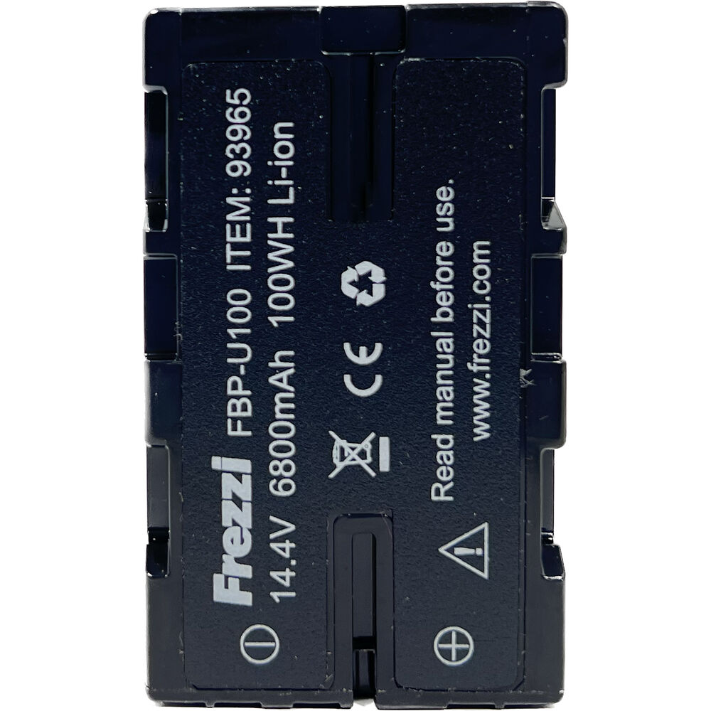 Add extended runtimes to your Sony camcorder, light, or other device with the 6940mAh capacity FPB-U100 Sony-Type Battery from Frezzi. This 14.4V, 100Wh battery features an LED power gauge and a reliable, durable design. Compatible chargers include Frezzi and Sony models.