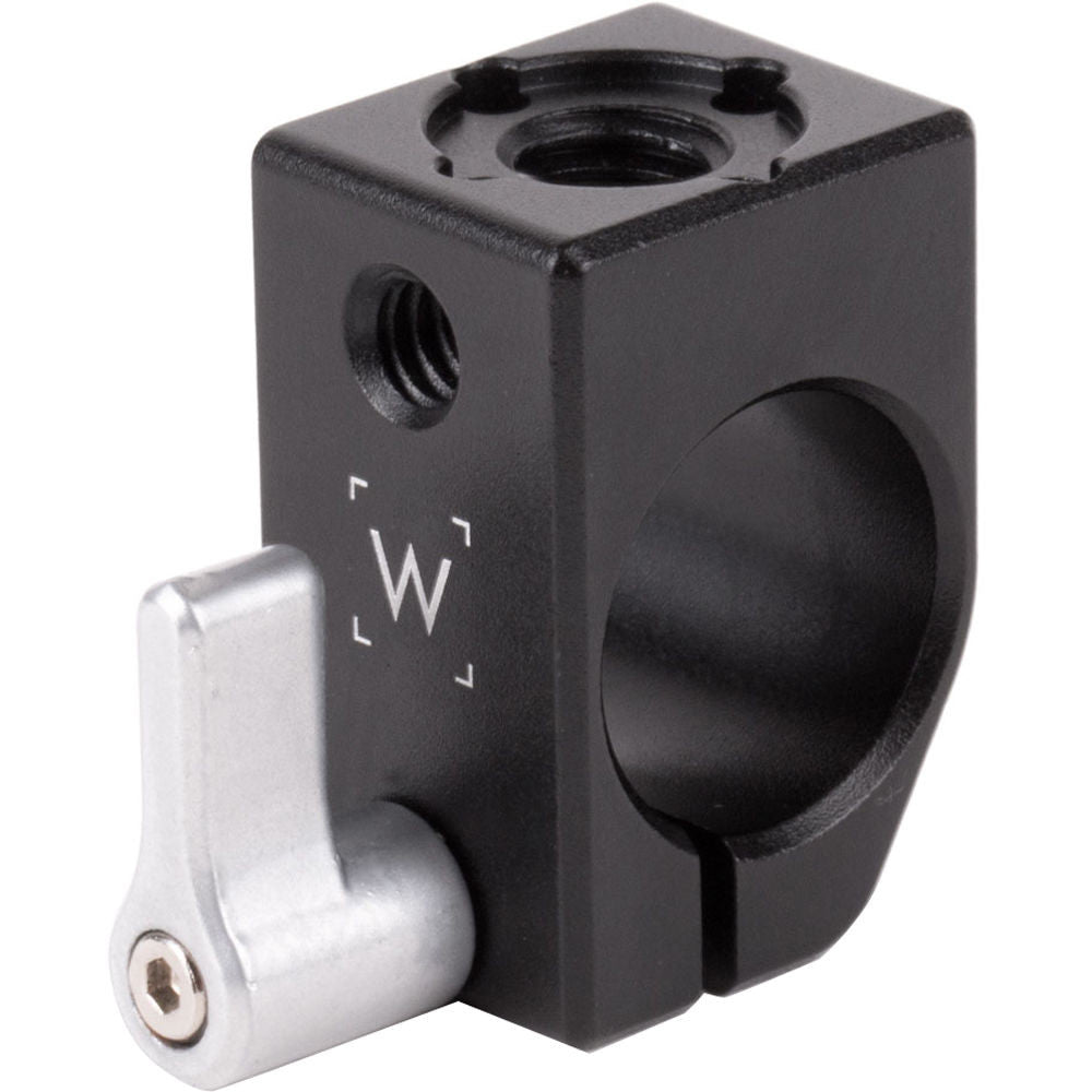 Provided by third party: 19mm Rod Clamp to ARRI Accessory Mount attaches to a 19mm rod and provides an ARRI standard accessory mount. In addition to the 3/8-16 hole, 1/4-20 holes are present on each side for attaching additional accessories.