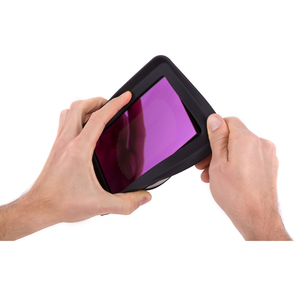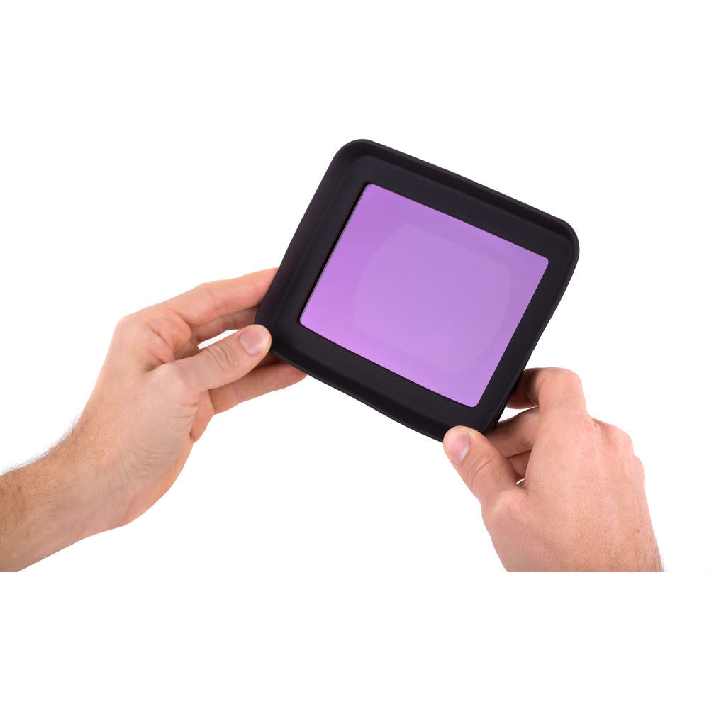 The 2-Stage Clamp-On Zip Box (90-95mm) from Wooden Camera is a lightweight matte box/sunshade. It holds up to two 4 x 5.65" filters and will fit lenses with a front diameter of 3.5-3.7". Flex the rubber body to snugly fit around the filter(s), then tighten the thumbscrew to clamp the Zip Box onto the lens. Its wide design prevents vignetting even when used with wide lenses and large camera sensors. This matte box features a durable, unibody rubber design and stainless steel hardware.