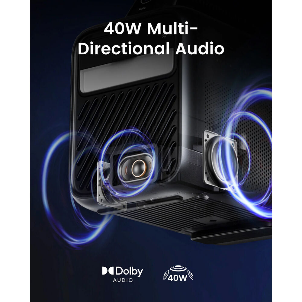 Connect sources via HDMI, and charge your phone or playback media from storage devices via USB-C and USB-A ports. Streaming access is built in with Android TV and support for Chromecast. Enjoy up to five hours of battery life for watching movies, or up to 15 hours for music playback in Bluetooth speaker mode. Furthermore, the built-in 40W multidirectional speaker system with Dolby Digital Plus delivers satisfying audio for all-in-one entertainment.