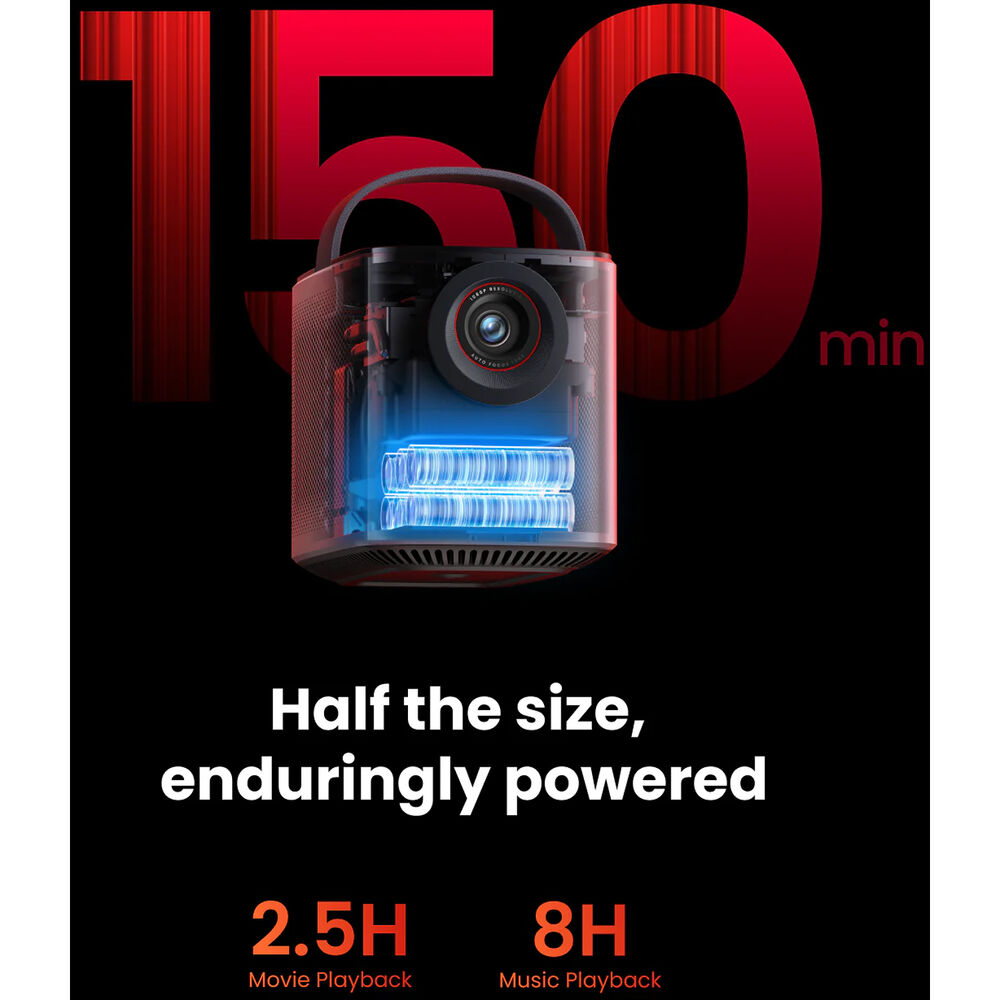 Connect sources via HDMI, and playback media from storage devices via USB-A. Enjoy up to 2.5 hours of battery life for watching movies, or up to 8 hours for music playback in Bluetooth speaker mode. Additionally, Dolby audio is supplied through built-in dual 8W speakers.