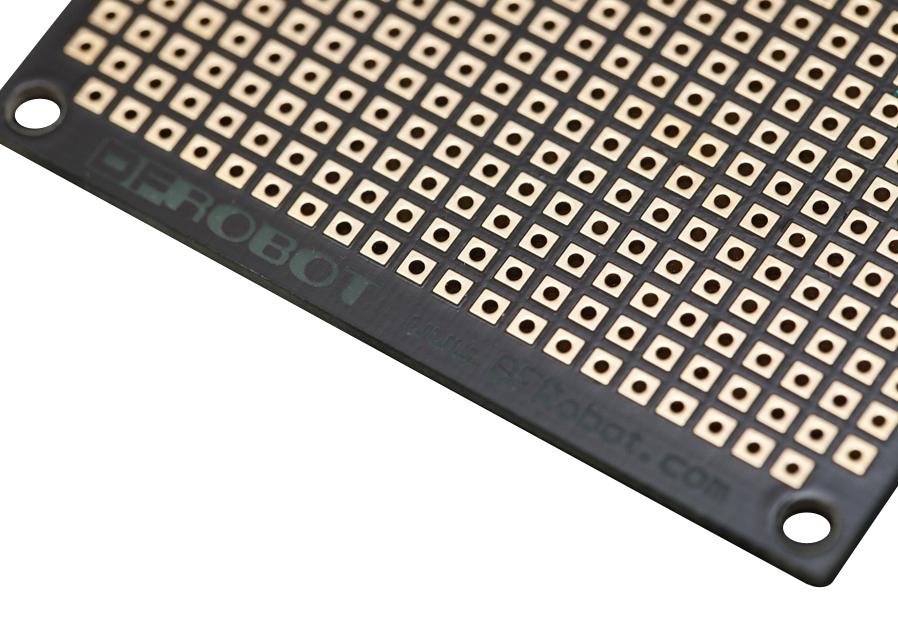ProtoBoard - rectangle 2" double sided is a very basic double sided prototyping board with standard 0.1" spacing through holes and four 3mm diameter mounting holes. There are 22x26 holes in total. Great for quickly prototyping stackable circuits.
