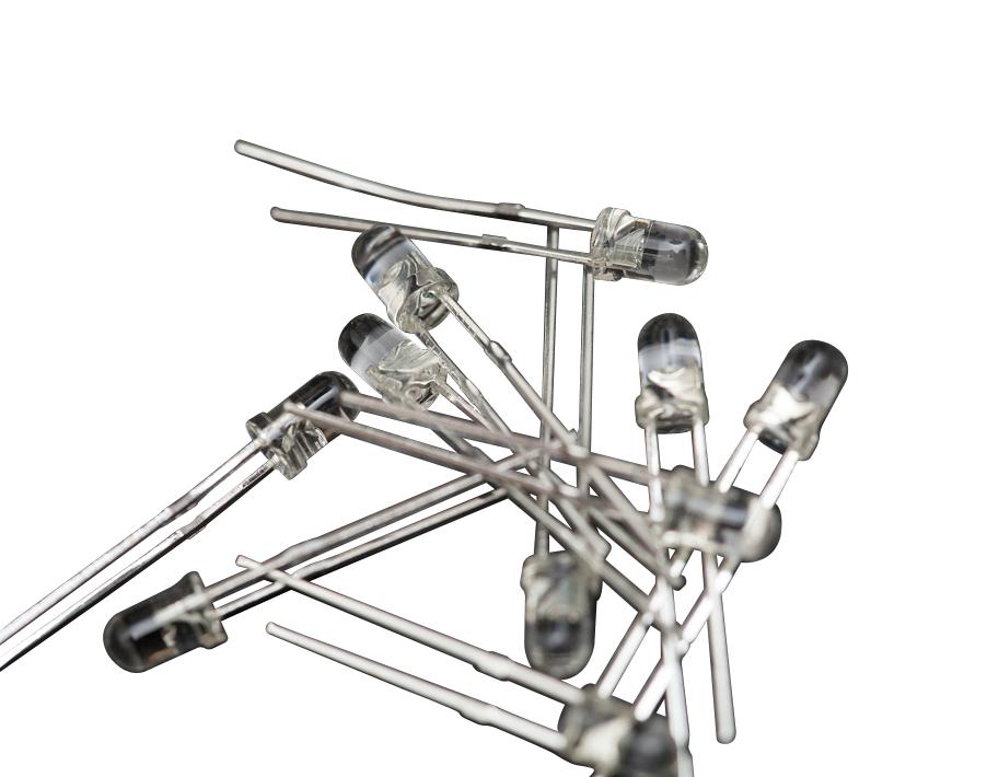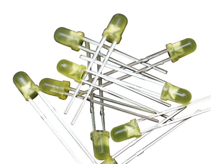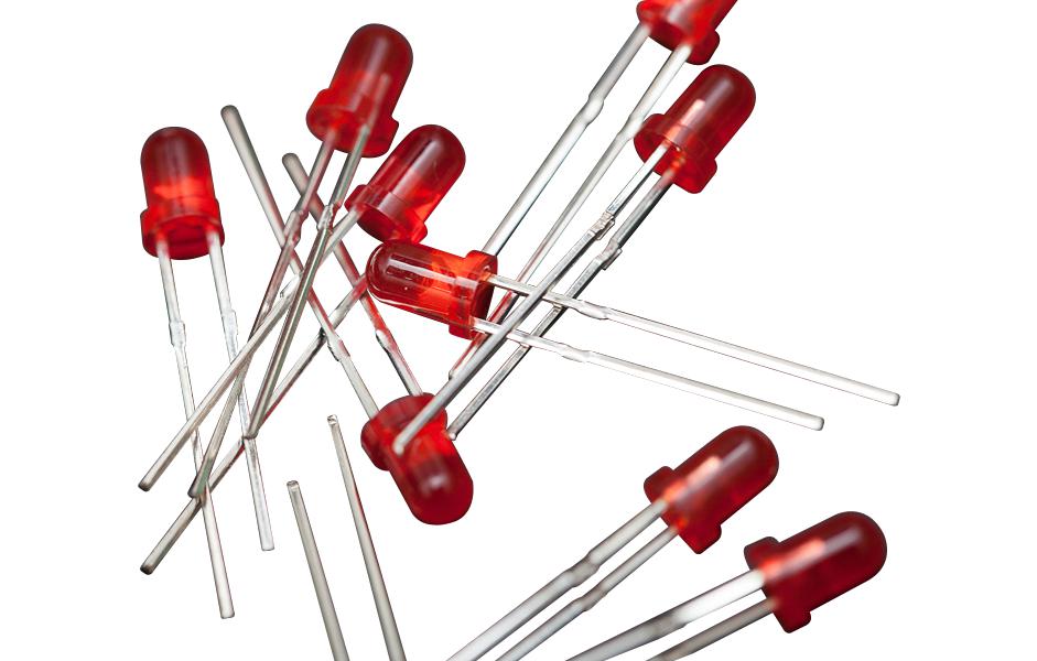 Basic red LEDs x10, Basic green LED x10, Basic yellow LED x10, White LEDs x10, Blue LEDs x10.