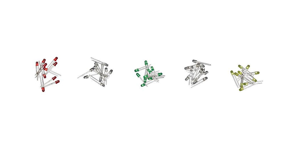 3mm LED pack (50 PCS). This package includes 50 3mm LEDs, 5 different colours. It covers three common colours: green, red and yellow. It is ideal for Arduino phototype projects.