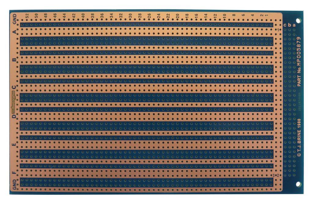 Versatile high density prototyping Eurocard circuit board, suitable for a wide range of applications. The MP005879 is a single height, double sided eurocard with DIN 41612 connector mounting holes and two power rails.