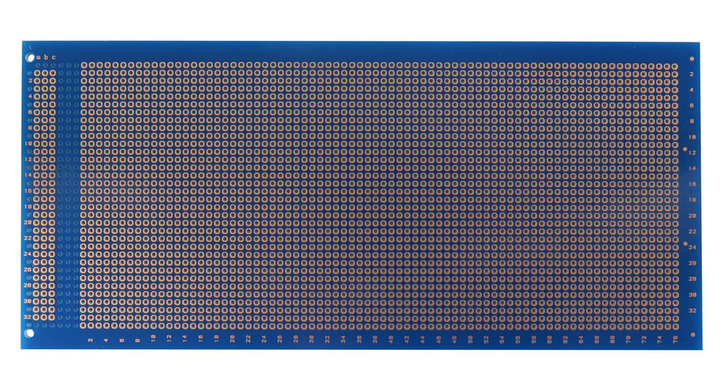 General purpose Eurocard prototyping PCB designed for total flexibility, allowing any assembly or wiring techniques such as as wire wrapping or discrete component wiring. The octagonal pads provide a larger soldering surface and the board provides silkscreen refences on the component side as well as a hole matrix grid on the solder side to ensure proper identification of component/wiring locations.