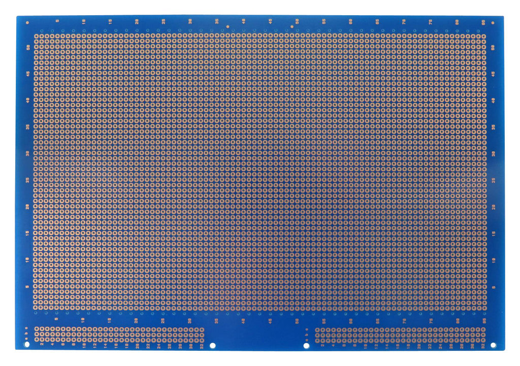General purpose Eurocard prototyping PCB designed for total flexibility, allowing any assembly or wiring techniques such as as wire wrapping or discrete component wiring. The octagonal pads provide a larger soldering surface and the board provides silkscreen refences on the component side as well as a hole matrix grid on the solder side to ensure proper identification of component/wiring locations.