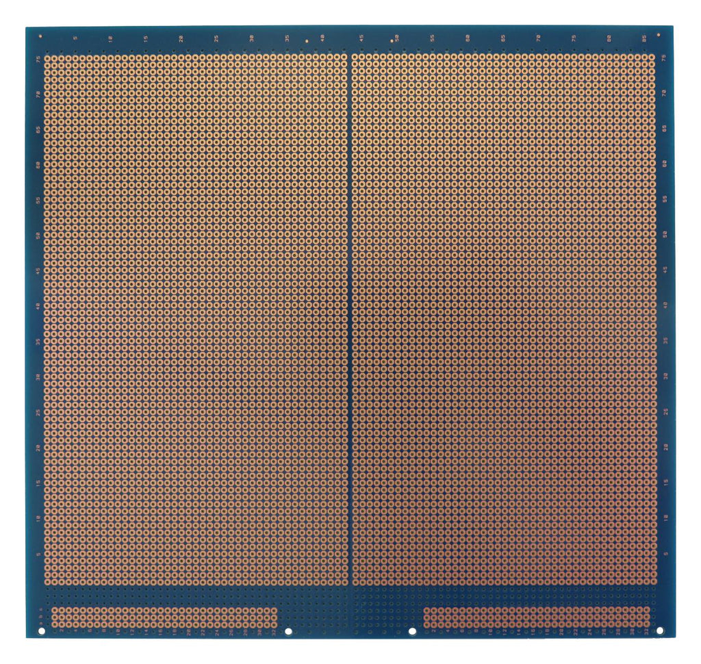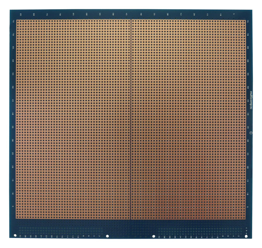 General purpose Eurocard prototyping PCB designed for total flexibility, allowing any assembly or wiring techniques such as as wire wrapping or discrete component wiring. The octagonal pads provide a larger soldering surface and the board provides silkscreen refences on the component side as well as a hole matrix grid on the solder side to ensure proper identification of component/wiring locations.